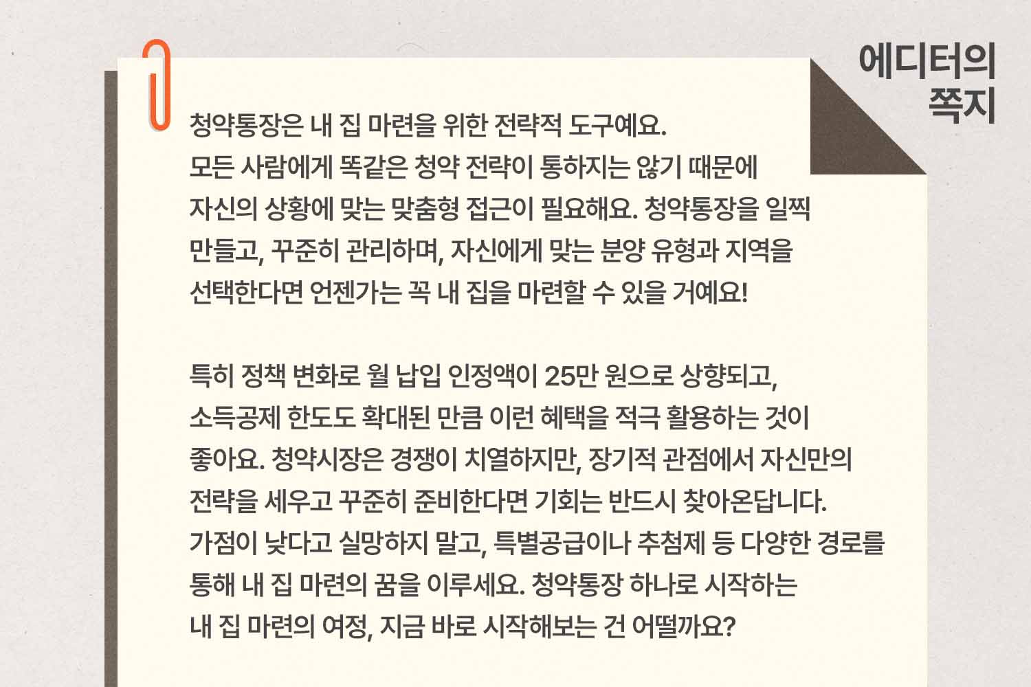 청약통장은 만능통장이 아니에요. 자신의 상황(나이, 가족 구성, 소득, 주거 계획 등)에 맞는 전략을 세우는 것이 중요해요.