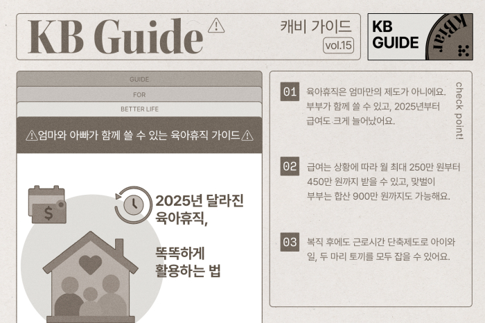 아이가 태어나면 누구나 한 번쯤 고민하게 되는 육아휴직. "우리 회사에서도 쓸 수 있을까?", "급여는 얼마나 받을 수 있을까?", "남편도 함께 쓸 수 있을까?" 같은 궁금증이 생기죠. 특히 2025년부터는 제도가 크게 바뀌면서 혜택도 늘어났는데, 정작 이런 정보를 정확히 아는 사람은 많지 않아요. 오늘은 육아휴직의 모든 것을 쉽고 정확하게 알아보겠습니다.